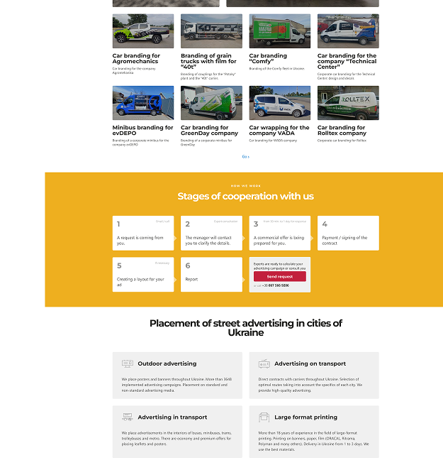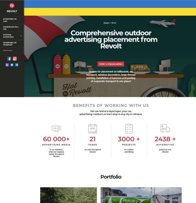 “Revolt is a Ukrainian advertising agency specializing in outdoor and indoor advertising, including banners, billboards, and posters. With years of industry experience, the company has the expertise to brand almost anything. The client approached us to audit their website’s search engine optimization and enhance the overall user experience. Our technical audit revealed several critical issues, including problems with language versions and site localization. We also found that users had to navigate through more than four pages to access essential information, and the site’s service offerings were not logically connected or structured around the user journey”